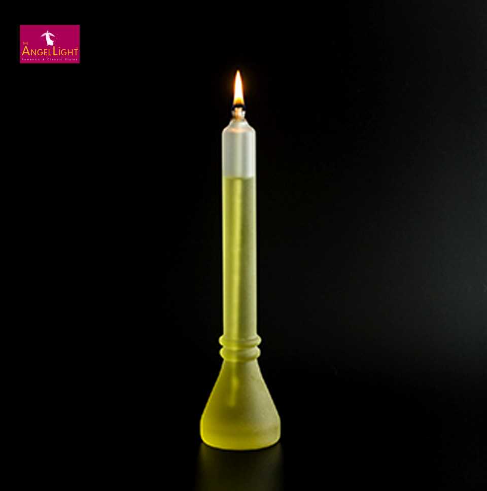• In contrast with kerosene, The Angel Light uses only the specifically formulated, The Angel Oil, the finest synthetic compounds, smokeless and odorless fire, clean and safe to use. The Angel Light produces no dripping wax or solid shadow. The burning rate can be easily adjusted via the wick height and left no waste which yields a competitive expense vs. the wax candle.