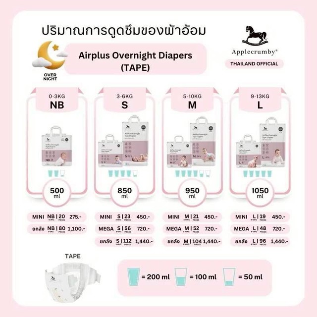 #Applecrumbythailand #ผ้าอ้อม #ผ้าอ้อมเด็ก #ผ้าอ้อมแบบกางเกง #ผ้าอ้อมแบบเทป #ปราศจากคลอรีน #ผ้าอ้อมปราศจากคลอลีน #ผ้าอ้อมไม่ก่อให้เกิดการแพ้ #ApplecrumbyChlorineFreeDiaper #PureBasics #Airplus #Overnight
