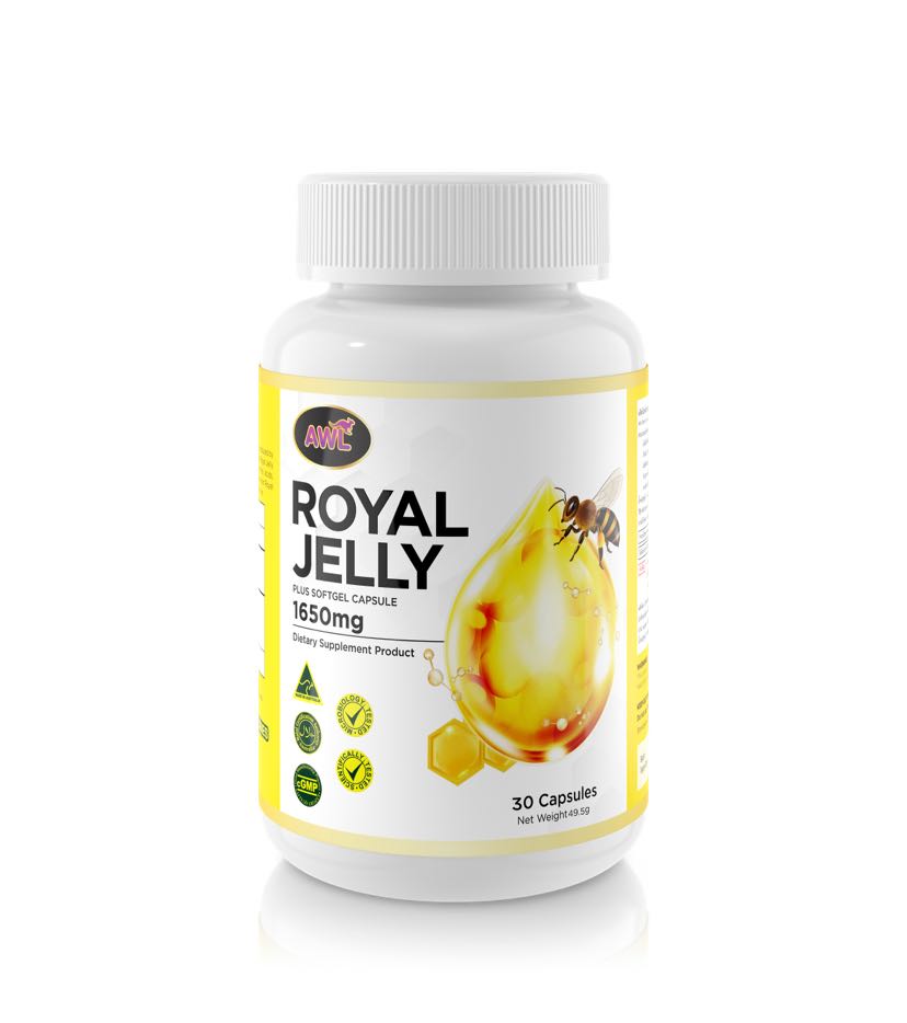 " ผลิตภัณฑ์เสริมอาหาร เอดับเบิ้ลยูแอล รอยัลเยลลีพลัส ชนิดแคปซูลนิ่ม 1650 มก.”