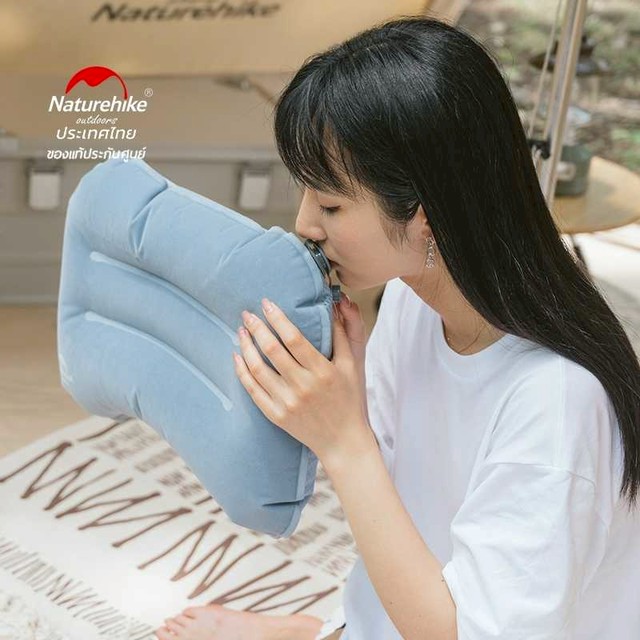 ⛺️ หมอนเป่าลมทำมาจาก TPU Flocking ให้สัมผัสที่นุ่ม ไร้เสียงรบกวน กระชับกับช่วงคอ