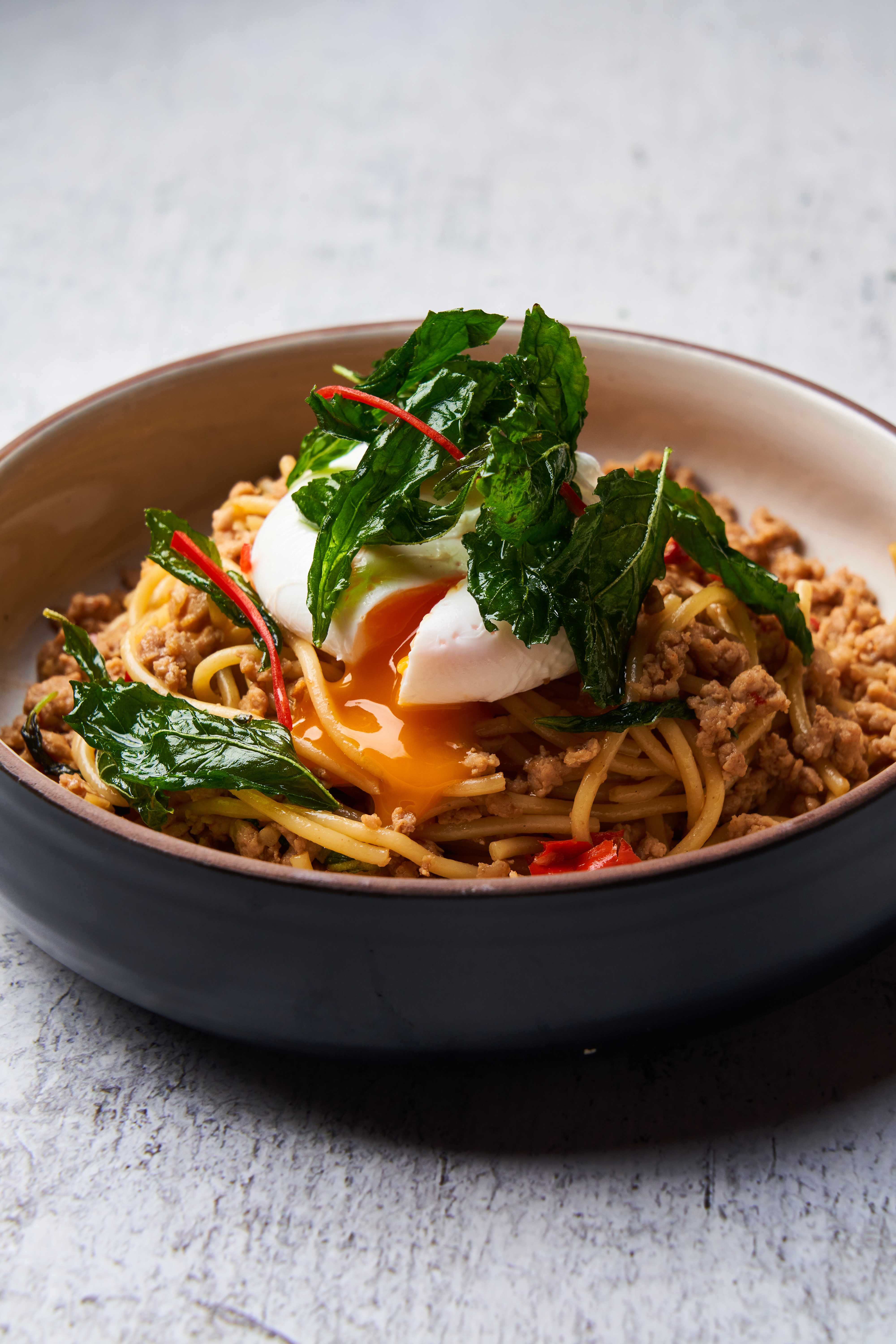 สปาเก็ตตี้ผัดกระเพราไก่/หมู