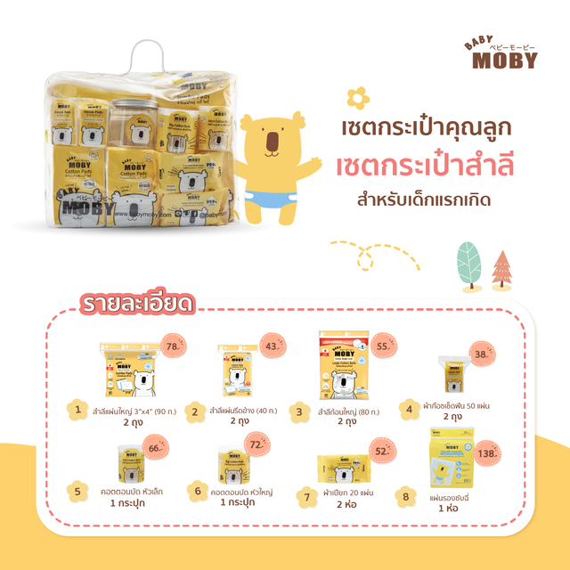 Baby Moby เซ็ตกระเป๋าคุณลูก ชุดสำลีสำหรับเด็กแรกเกิด รวมสินค้าจำเป็นสำหรับเด็กแรกเกิด