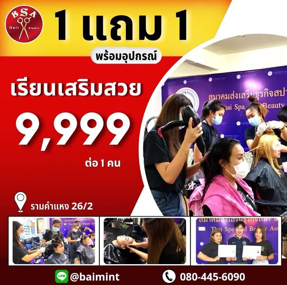 ช่างเสริมสวยเป็นหนึ่งอาชีพที่ได้นิยมมากมาตั้งแต่อดีตจนปัจจุบัน แม้คู่แข่งเยอะ แต่ความต้องการทำผมของผู้หญิงมีมาก ทุกสัปดาห์ ทุกเดือนเลยก็ว่าได้ และในการลงทุนค่าอุปกรณ์ไม่สูงแต่สามารถทำกำไรได้เยอะหลายเท่าตัว ได้เงินเร็ว เริ่มต้นเรียนไม่เกิน 1 เดือนหลังจากนั้นก็รับงานคืนทุนได้ทั้งหมดแล้วค่ะ ยิ่งมีเทคนิคมาใหม่สม่ำเสมอ ออกแบบทรงผม ตัดตรงใจที่ลูกค้าต้องการตามเทรนแฟชั่นนิยม รีวิวผลงานบ่อยๆ ยังปังค่ะโปรโมชั่น เรียน 1 ฟรี 1 พิเศษ 19,999 บาท ( เฉลี่ยคนละ 9,999 บาท/คน/คอร์สพร้อมอุปกรณ์จะเรียนคนเดียวทั้งหมด หรือ มีเพื่อนมาเรียนด้วยกันก็ได้ค่ะหลักสูตรเริ่มต้นตั้งแต่พื้นฐานจนเป็นมืออาชีพ หลักสูตรเรียนจนกว่าจะเป็นพร้อมรับงานได้เลยค่ะเรียนทุกแบบทรงผม ตัดซอย ไดร์ทุกแบบ จนกว่าจะเป็น ฝึกฝนจนชำนาญ ทุกเทคนิคต่างๆที่ต้องใช้จริง การใช้อุปกรณ์ การดูแลรักษาอุปกรณ์ต่างๆ ที่จะนำไปใช้จริงๆค่ะมีหุ่นลงคนจริงก่อนจบ เตรียมความพร้อมรับงานจริง - ให้คำแนะนำ เทคนิค ตลอดการเรียน จบแล้วกลับมาทบทวนได้ฟรี- มีอุปกรณ์ก่อนเรียน และใบรับรองเมื่อเรียนจบ- ยังไม่พร้อมเรียน สมัครจองไว้ก่อน เก็บสิทธิ์มาเรียนภายหลังได้ตามความสะดวก- ไม่จำกัดเพศและอายุ ครูใจดี เป็นกันเอง เน้นเทคนิคให้เต็มที่ค่ะ- แนะแนวทางการเปิดร้าน การหางาน มีเป้าหมายเมื่อเรียนจบค่ะสถานที่ : ซอยรามคำแหง 26/2 (ใกล้กับบริษัทโอสถสภา) แขวง หัวหมาก เขต บางกะปิ กทม. ใกล้ถนนใหญ่ เดินทางสะดวกสามารถเดินทางจากเส้นทาง / ถนนรามคำแหง / ถนนศรีนครินทร์ / ถนนพระราม 9 / ถนนสุขุมวิท(พระโขนง)เปิดสอน เวลา 09:00-16:00 น. หยุดทุกวันศุกร์พิกัด : ซอยรามคำแหง 26/2 (ใกล้กับบริษัทโอสถสภา)