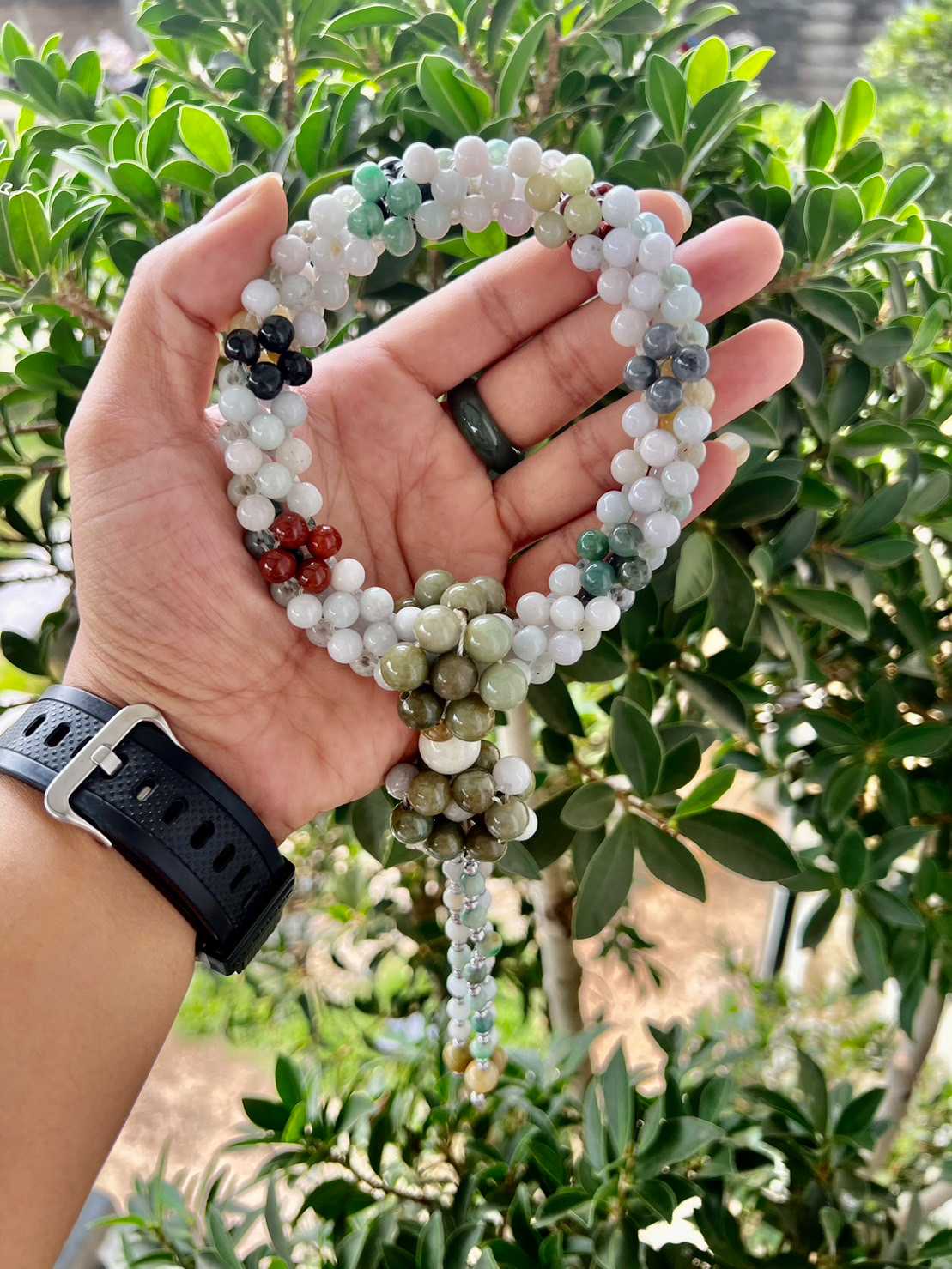 พวงมาลัย หยกพม่าแท้ ขนาด 7.8 มิล ความยาว 10 นิ้ว สวมคล้องแขนได้ ไว้บูชาที่หิ้งพระ