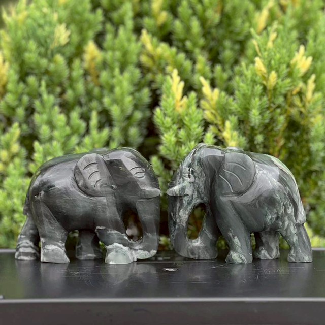 ช้างหยก หยกแกะสลัก ช้างหยกแกะสลัก หยกพม่า หยกนำโชค ขนาด 2"3"4" นิ้ว ช้างมงคลแกะสลักจากหยกธรรมชาติ แกะสลักรูปปั้นช้างสีเขียวแกมดำ ของตกแต่งบ้าน สำนักงาน ของประดับเพื่อความเป็นศิริมงคล สินค้า: ช้างมงคลแกะสลักจากหยกแท้ ลักษณะงาน: แฮนด์เมด แหล่งที่มา: พม่า สี: เขียวแกมดำ ขนาด: 2 x 3 x 4 นิ้ว (ก x สูงx ย) หนัก: 450 g ของตกแต่งบ้าน สำนักงาน โต๊ะทำงาน เครื่องประดับเป็นศิริมงคล เสริมดวง ความเชื่อ: ในทางด้านของฮวงจุ้ยนำช้างมาใช้ในเรื่องของความสูงใหญ่ เปรียบเป็นภูเขาสูงใหญ่ที่มั่นคง ตามหลักของฮวงจุ้ย หน้าที่การงาน เชื่อว่าการที่จะมีพละกำลังอำนาจมีความใหญ่โตดั่งตัวช้าง (หมายถึงความใหญ่โตในด้านการงาน) พละกำลังของช้างจะช่วยปัดเป่าภัยอันตรายทั้งปวงไม่ให้เข้ามา ดังนั้นรูปปั้นช้างจึงเป็นของแต่งบ้าน หรือวางบนโต๊ะทำงาน ช้างยังเป็นสัญลักษณ์ ของความมั่นคง ความสำเร็จ ความสมบูรณ์ ให้กับชีวิตตนเอง ครอบครัว และผู้ที่ครอบครอง