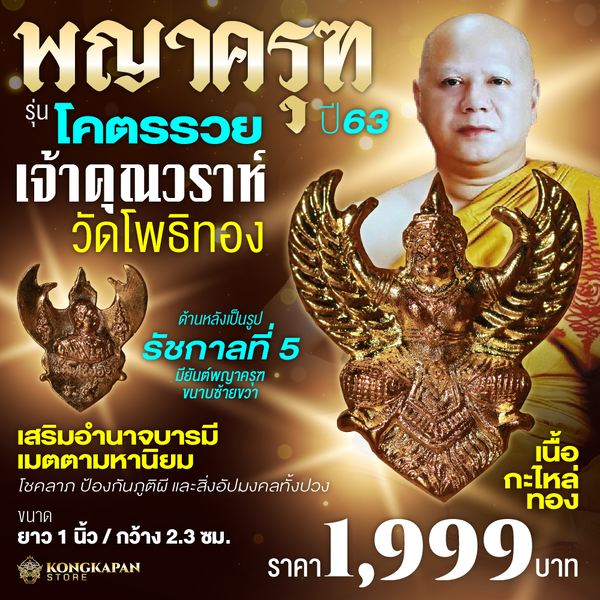 พญาครุฑ รุ่น "โคตรรวย" หลวงพ่อวราห์ วัดโพธิ์ทอง