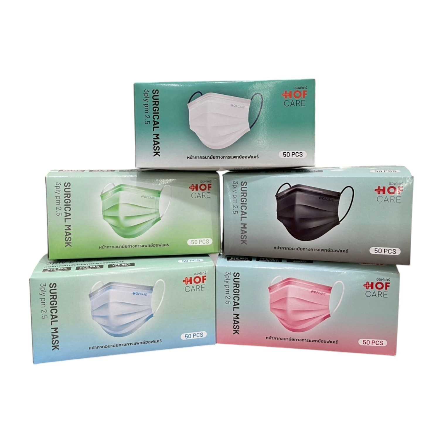 หน้ากากทางการแพทย์ HOF CARE 3 ชั้น กล่องละ 50 ชิ้น