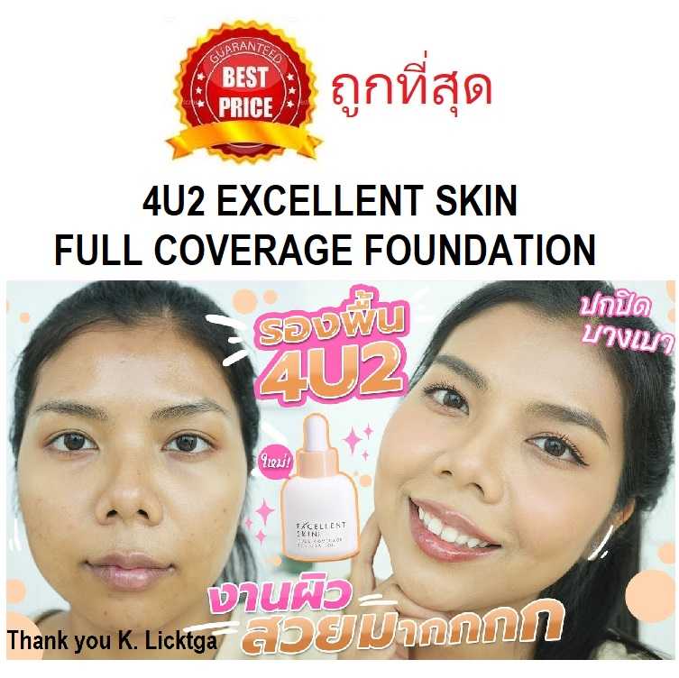 4U2 EXCELLENT SKIN FULL COVERAGE FOUNDATION SPF50+ PA++++ รองพื้นที่ปกปิด และเซ็ทผิวแมทสวยสุดๆ คุมมันต่อเนื่องได้ยาวนาน แบบสบายผิว! และยังเนียนสนิทไปกับผิว ไม่ตกร่อง กลบทุกปัญหาผิวได้อย่างง่ายดาย แถมยังกันน้ำ กันเหงื่อ ติดทนนานมากๆ คุมมัน 24 ชม. และกันแดดสูงสุดด้วยSPF50+ PA++++
