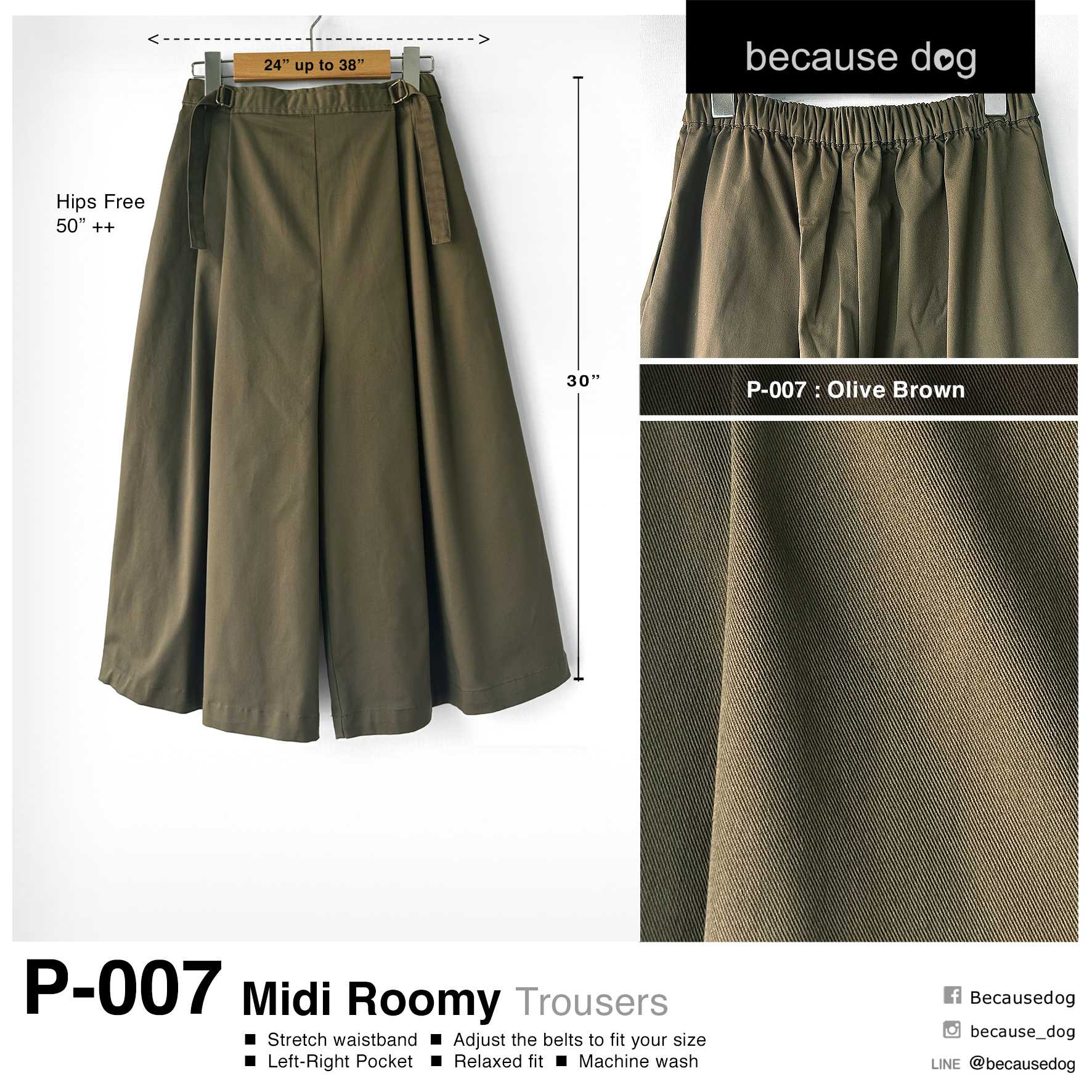 P-007 : Olive Brown ผ้าคอตตอนสีน้ำตาลอมเขียว หนากลางๆ ผ้าไม่พริ้วค่ะ ใส่แล้วขาพองๆค่ะ