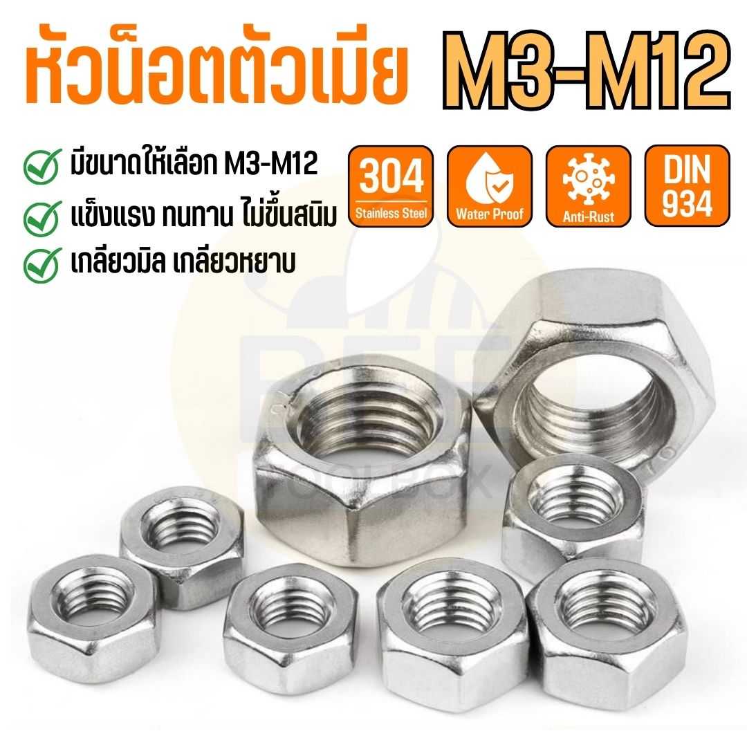 🔩น็อตหกเหลี่ยม น็อตตัวเมีย สแตนเลส 304