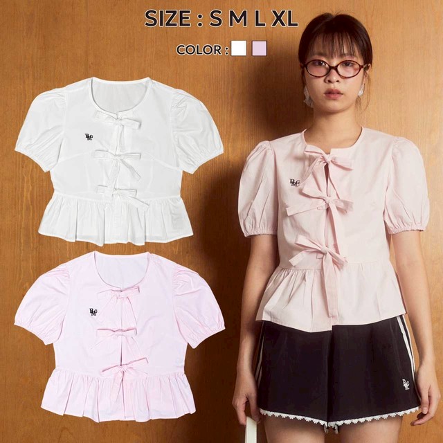 เสื้อแขนตุ๊กตา ดีเทลผูกโบว์ 3 ชั้น