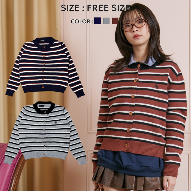 Bemingtop730 - BMG Knit Cardigan Ver.22 งานผ้าทอลายริ้ว จับคู่โทนสีเบสิคแมทซ์ง่าย กระดุมสีน้ำตาล