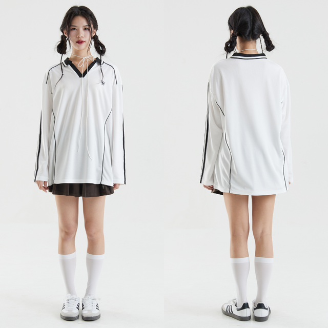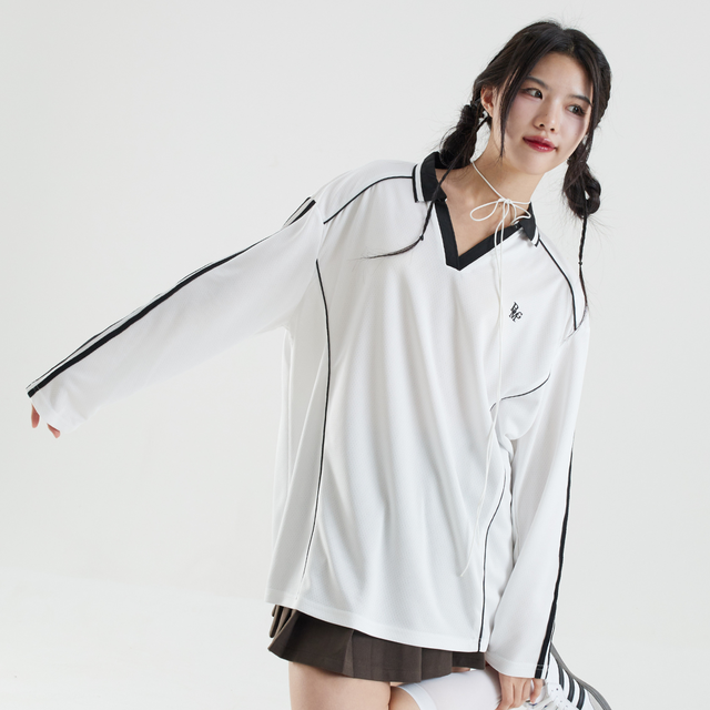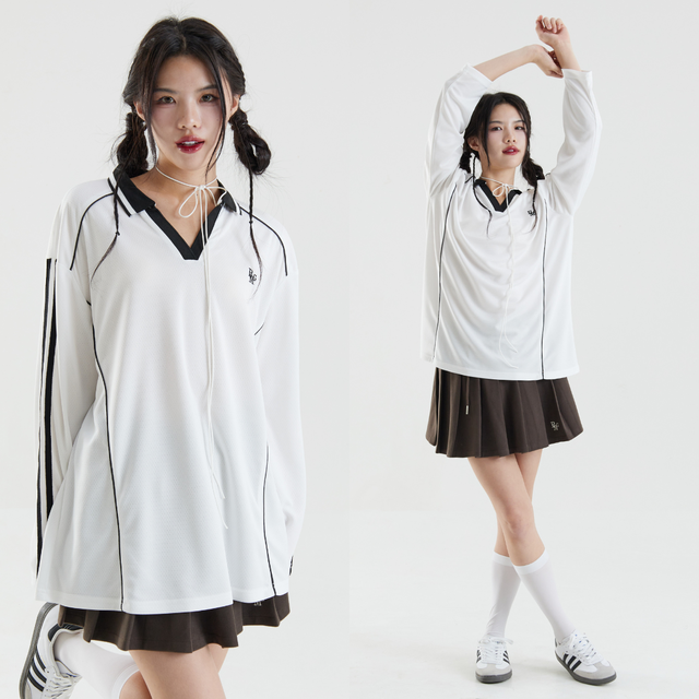 Bemingtop748 - Beming Sporty Top แขนยาวคอวีมีปก ผลิตจากผ้าคุณภาพสูงที่ระบายอากาศได้ดี