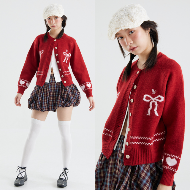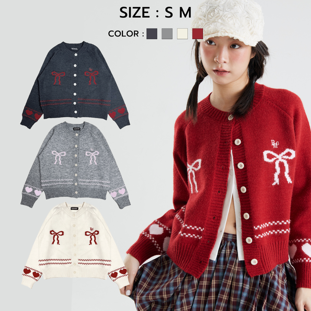 Cardigan ที่เหมาะกับ คริสมาสต์นี้สุดๆ ต้องรุ่นนี้เลยค่ะ Detail งานละเอียดมาก ดีเทลน่ารักโบว์สีชมพู งานถักผ้าไหมพรม มาพร้อมสีสันที่ใส่ได้ทุกสีไม่จำเป็นต้องแดงในเทศกาลนี้ ลุคน่ารัก มินิมอล พลาดไม่ได้ค่ะ