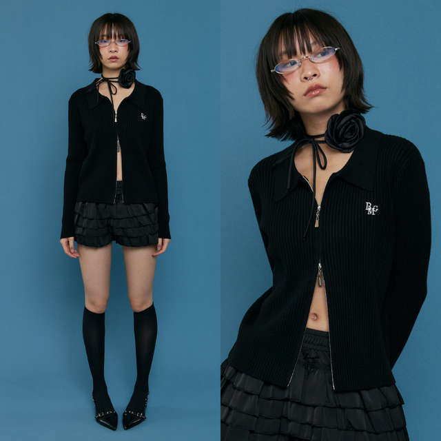 เสื้อคาร์ดิแกนทรงคอปกสุดคูล มาในดีไซน์ซิปหน้าแบบเปิด-ปิดได้ทั้งบนล่าง จะใส่เป็นเสื้อคลุมหรือใส่เดี่ยวก็เท่ เนื้อผ้าเป็นไหมพรมริบยืดหยุ่นพอดีตัว