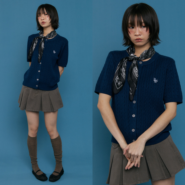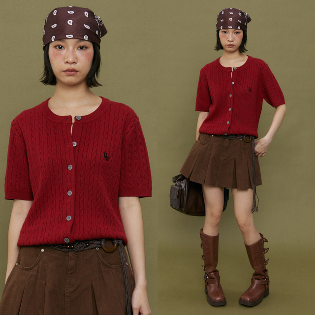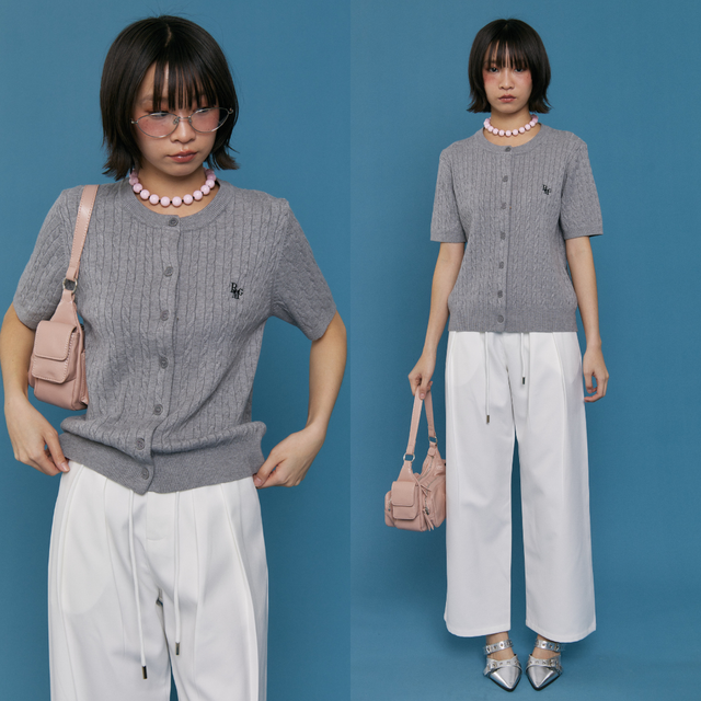 Bemingtop978(S-M)-Mini Ver.1 Knit – คาร์ดิแกนแขนสั้นลายเปีย ต่อยอดจากรุ่นขายดีเวอร์ชั่นแขนยาว!