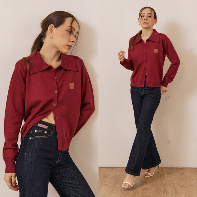 Bemingtop994(S-M)-BMG Collar Knit Cardigan – คาร์ดิแกนคอปกเรียบเท่ เสริมลุคให้ดูดี