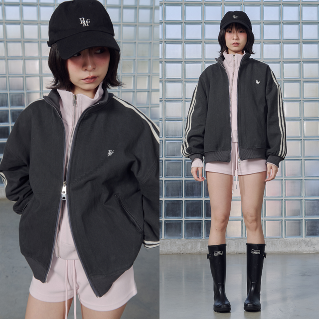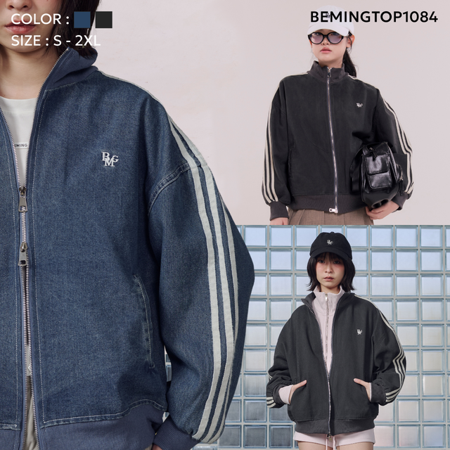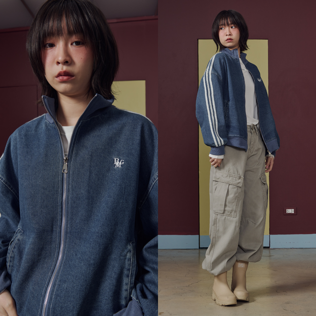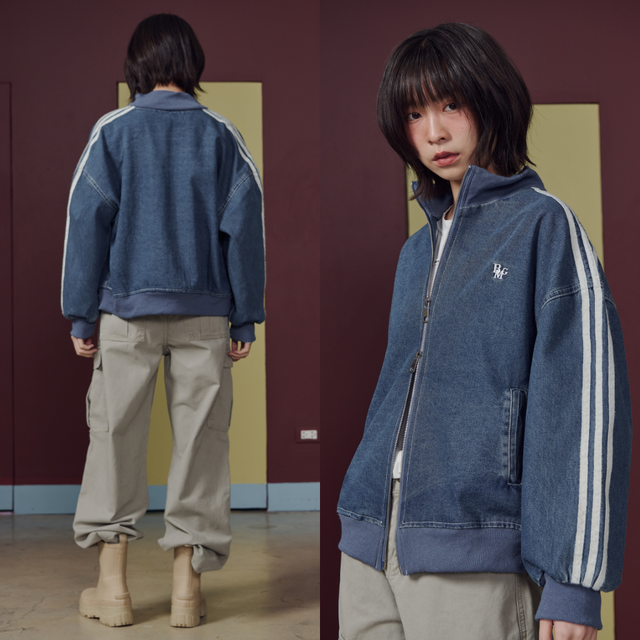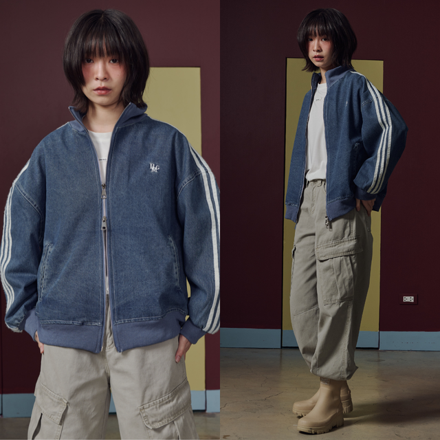 แจ็กเก็ตยีนส์ทรงลำลอง ดีไซน์แถบไลน์บริเวณแขนเพิ่มลุคสปอร์ตนิด ๆ ทำให้ดูคล่องตัวและทันสมัย ทรงโอเวอร์เล็กน้อย ใส่ง่าย เข้ากับหลายสไตล์