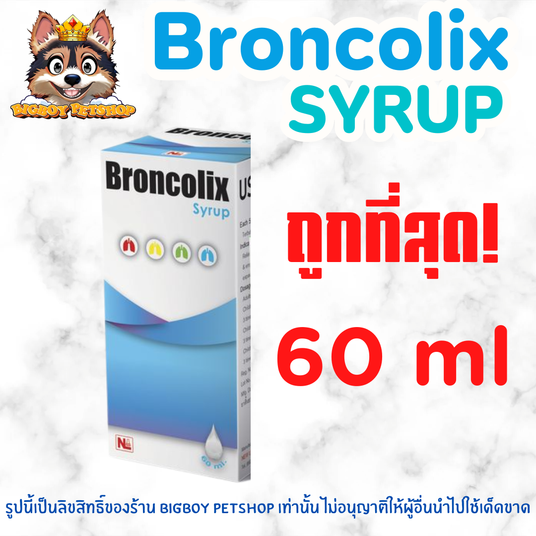 ยา Broncolix Syrup ขนาด 60 ml เป็นยาน้ำเชื่อมที่ใช้เพื่อบรรเทาอาการไอและช่วยขับเสมหะ