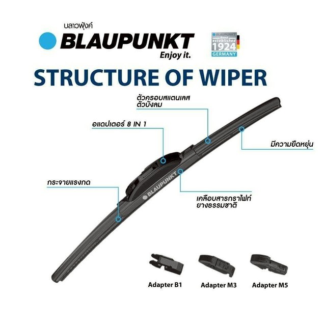 BLAUPUNKT ใบปัดน้ำฝน รุ่น Velocity Wiper Blade ยางปัดแบบไร้โครง มาตรฐานเยอรมัน