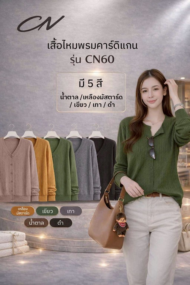 CN60 เสื้อไหมพรมแขนยาวเอวจั๊ม 5 สีสวย กระดุมแกะใช้งานได้จริง ผ้านุ่มใส่สบาย