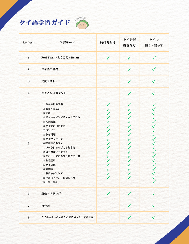 タイ語の世界をのぞいてみませんか? まずはリラックスした1時間のレッスンで、あなたに合った学習のペースとプランを一緒に見つけましょう。