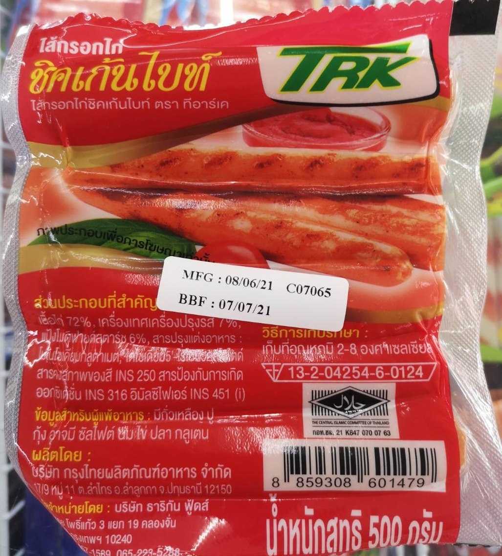 (พรีออเดอร์ 2-3วันได้ สั่งขั้นต่ำ 20แพ็ค) (TRK) ไส้กรอกไก่ชิคเก้นไบท์ TRK 415g. x 10 pack