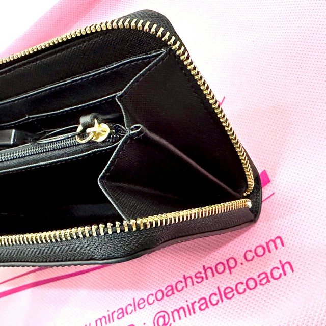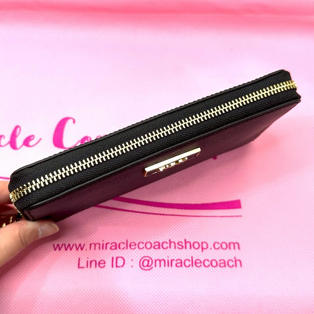 กระเป๋าสตางค์ DKNY ของแท้ มือ 1 พร้อมกล่อง กระเป๋าสตางค์ใบยาวซิปรอบ หนังฟอกแบบกันรอยขีดข่วน หนังเป็นทรง ใส่ธนบัตรได้ ไม่ต้องพับ ช่องเยอะ ใช้งานง่าย DKNY Saffiano Leather Zip Around Wallet Black