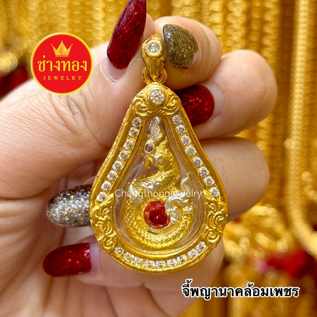 จี้พญานาค(ล้อมเพชร) เสริมอำนาจบารมี เสริมสิริมงคล จี้ปลุกเสก ทองชุบ ทองไมครอน ช่างทองจิวเวลรี่