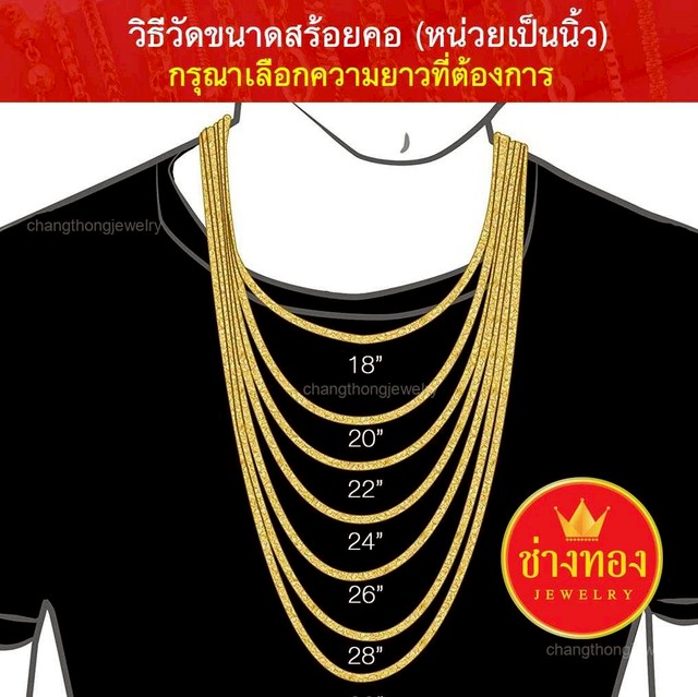 วิธีวัดขนาดสร้อยคอเเละสร้อยข้อมือ (นิ้ว)