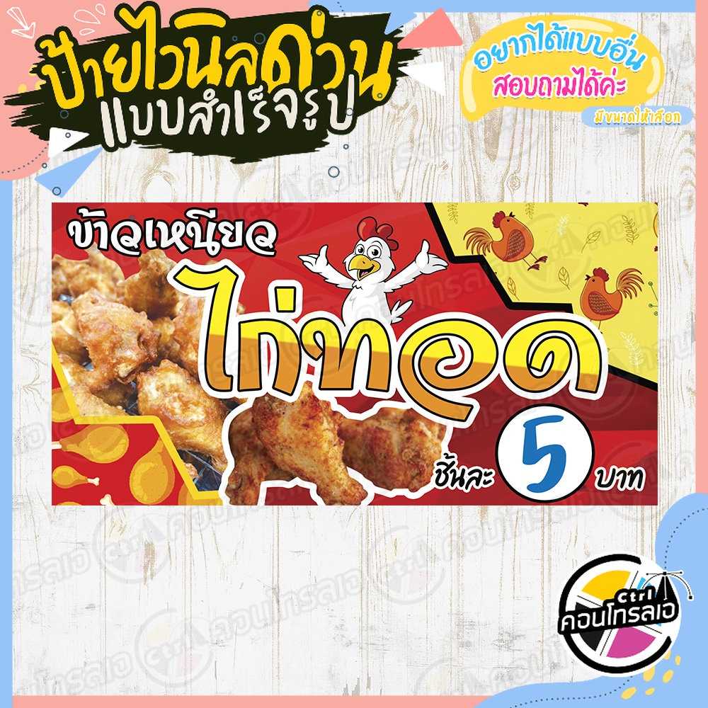ป้ายไวนิล ข้าวเหนียว ไก่ทอด ชิ้นละ 5 บาท แบบสำเร็จรูป