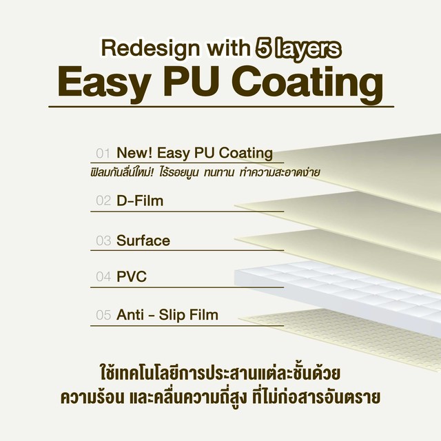 • เคลือบผิวด้วย PU coating ทนต่อรอยขีดข่วนจากเล็บสัตว์เลี้ยง