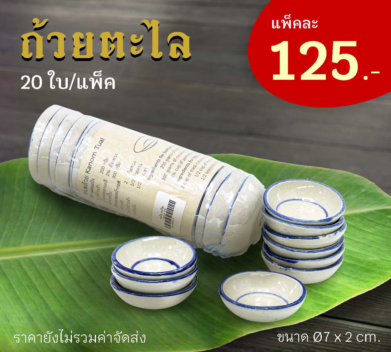 ถ้วยตะไล มีขนาด ความกว้าง 7 cm. และ ความสูง 2 cm.