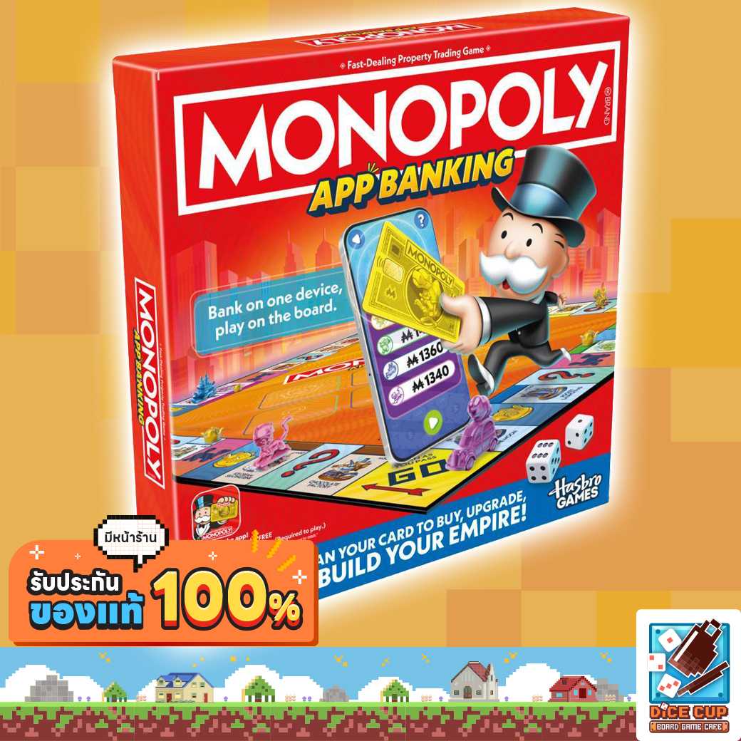 Monopoly App Banking app required to play. App not available in all languages or locations. App design subject to change. Check apps.hasbro.com for app availability, operating systems and device compatibility and updates. Monopoly App Banking app is not guaranteed to be compatible with any future systems or devices. Fees may apply.