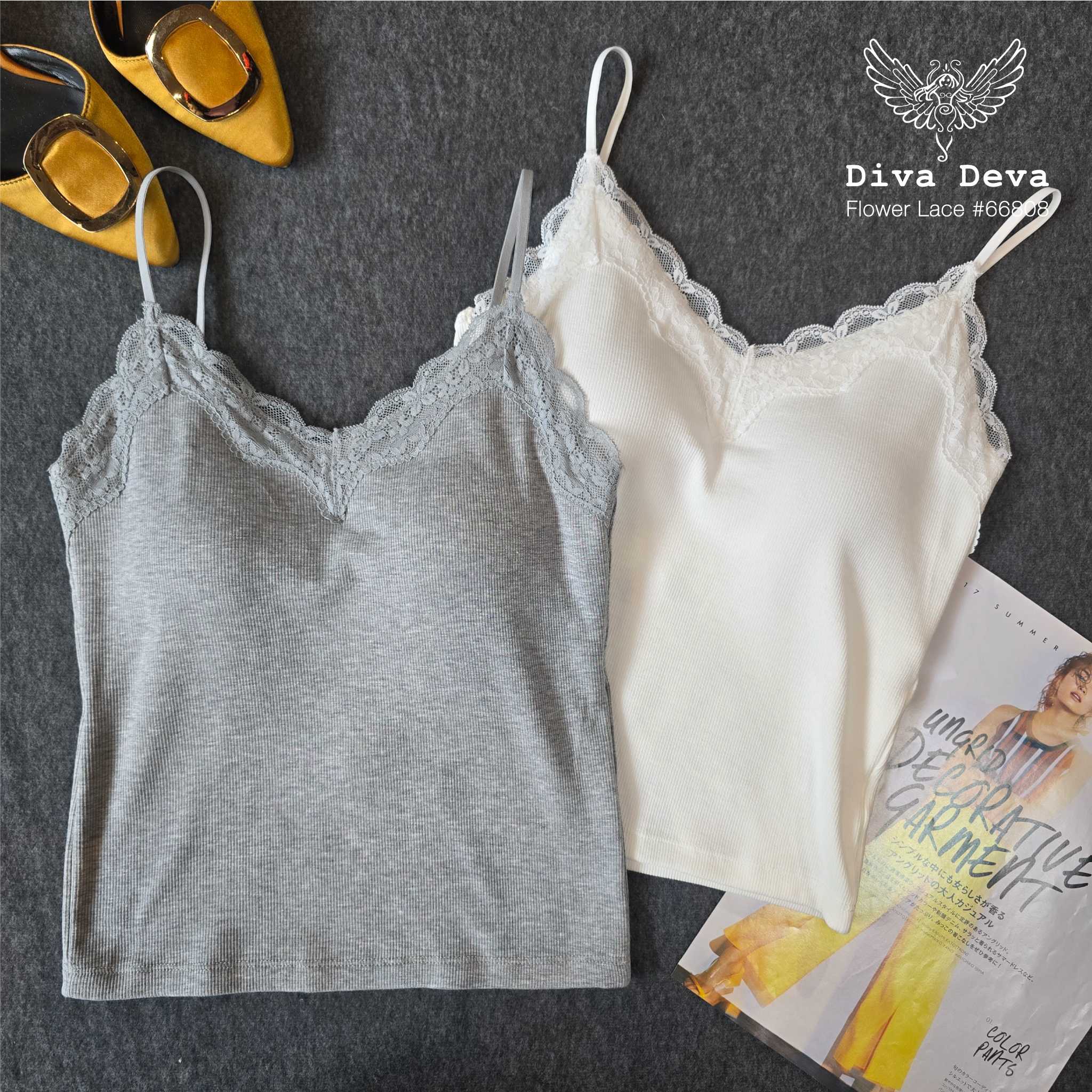 Cami Flower Lace เสื้อสายเดี่ยวลูกไม้ บราในตัว สายปรับระดับได้ เทา/ดำ/ขาว