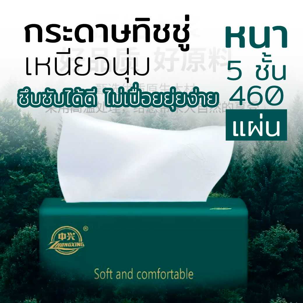 กระดาษทิชชู่ กระดาษชำระ กระดาษเช็ดหน้า ราคาถูก ยกลัง ห่อ 460 แผ่น 5 ชั้น หนา เหนียว นุ่ม ซับน้ำได้ดี