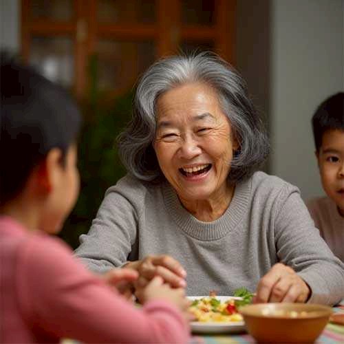 คุณยายเล็กสามารถร่วมโต๊ะอาหารกับหลานๆ ได้อย่างมีความสุข หัวเราะเสียงดังโดยไม่ต้องกลัวอาการกำเริบ
