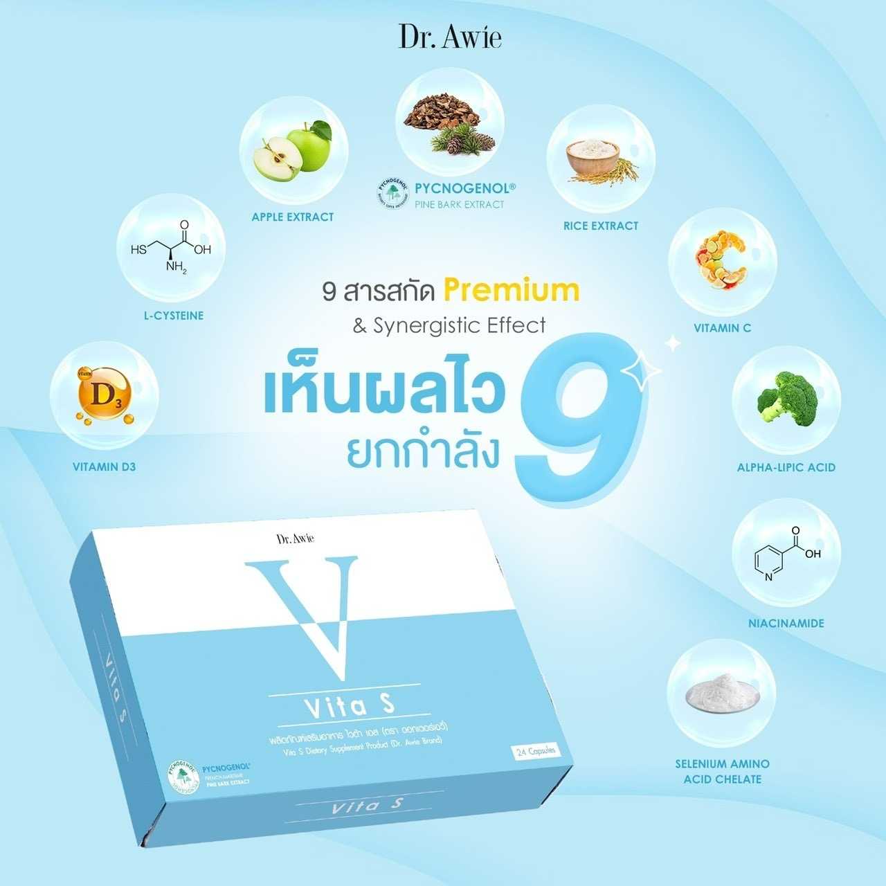▶ ใน Vita S มีสารสกัดสำคัญ คือPycnogenol และ Apple Phenol
