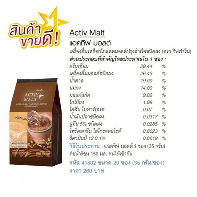 3.กิฟฟารีน แอคทีฟ มอลต์ รีดิวซ์ ชูการ์ ACTIV MALT REDUCED SUGAR