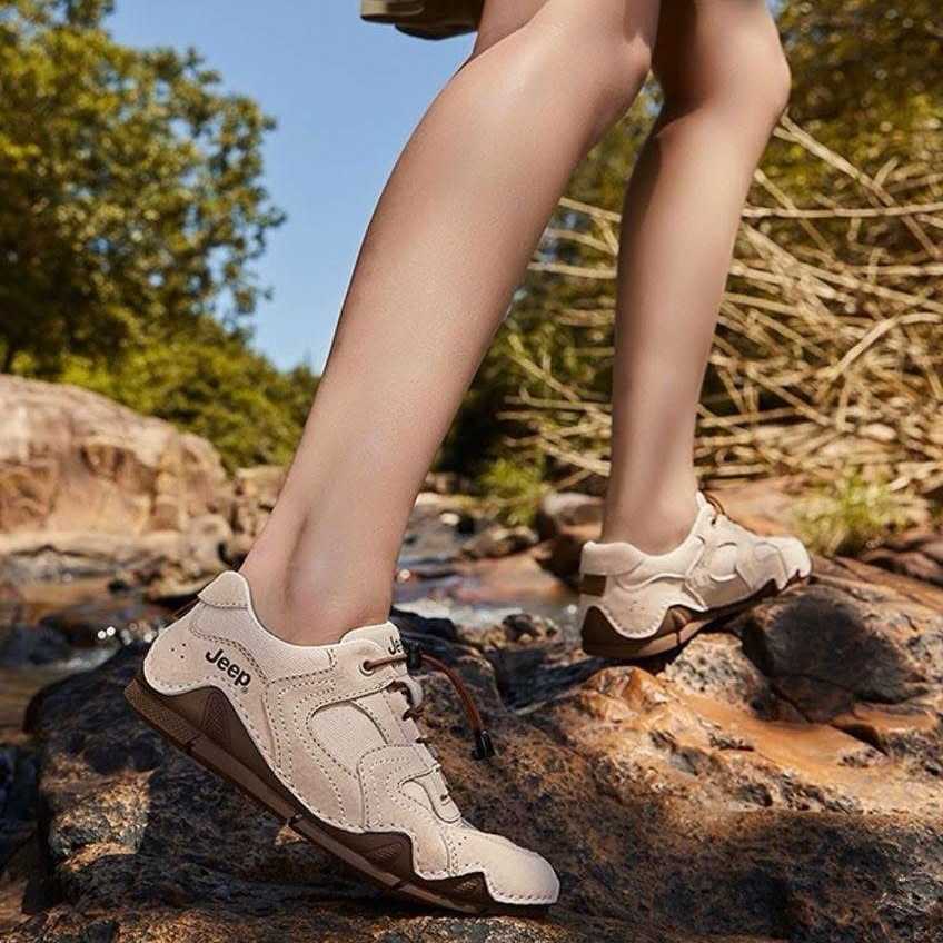 JEEP Jeep Dexun Sneaker รองเท้าผ้าใบ สีเทาอมเบจ