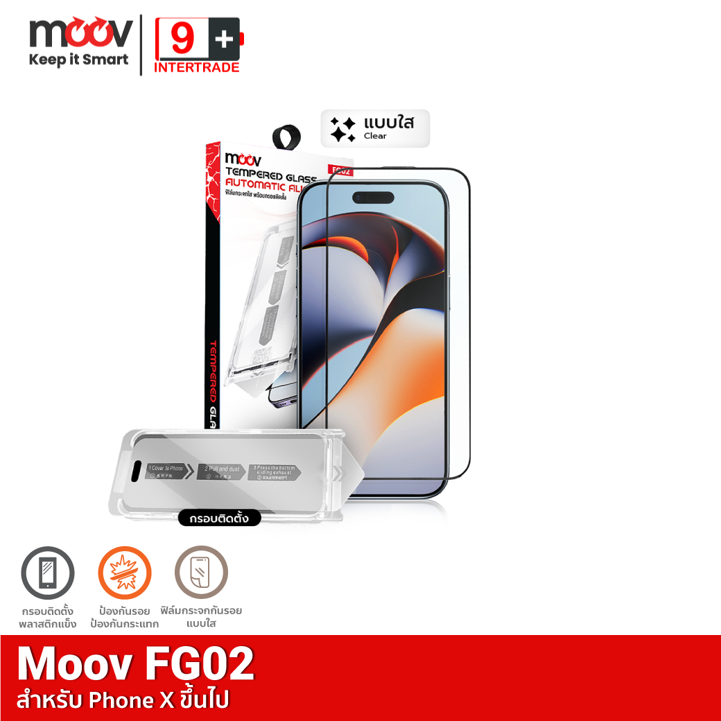 ・1 x Moov FG02 ฟิล์มกระจกนิรภัย พร้อมกรอบติดตั้ง