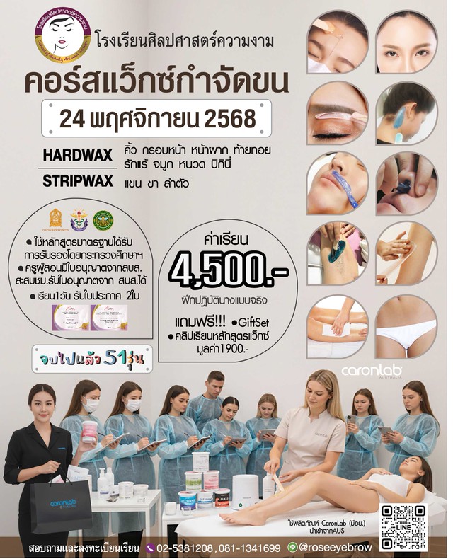 หลักสูตร การกำจัดขนแว็กซ์ขนตารางเรียน 24 พฤศจิกายน 2568 นี้