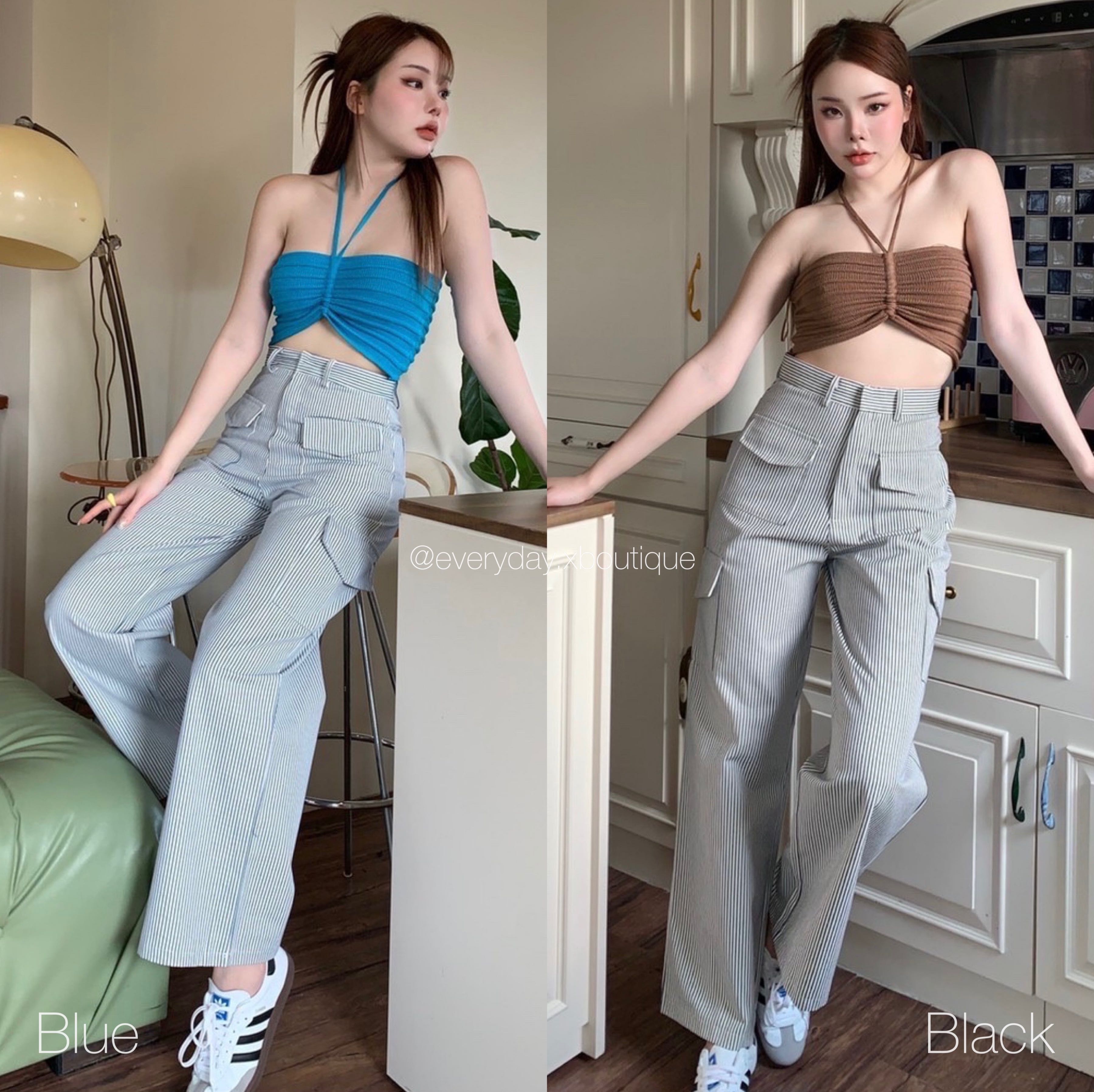 Y2k stripe pant (420฿) กางเกงลายริ้วรุ่นใหม่ของทางร้านมาแล้วค่า ทรงสวยมาก ดีเทลแต่งกระเป๋าคาร์โก้