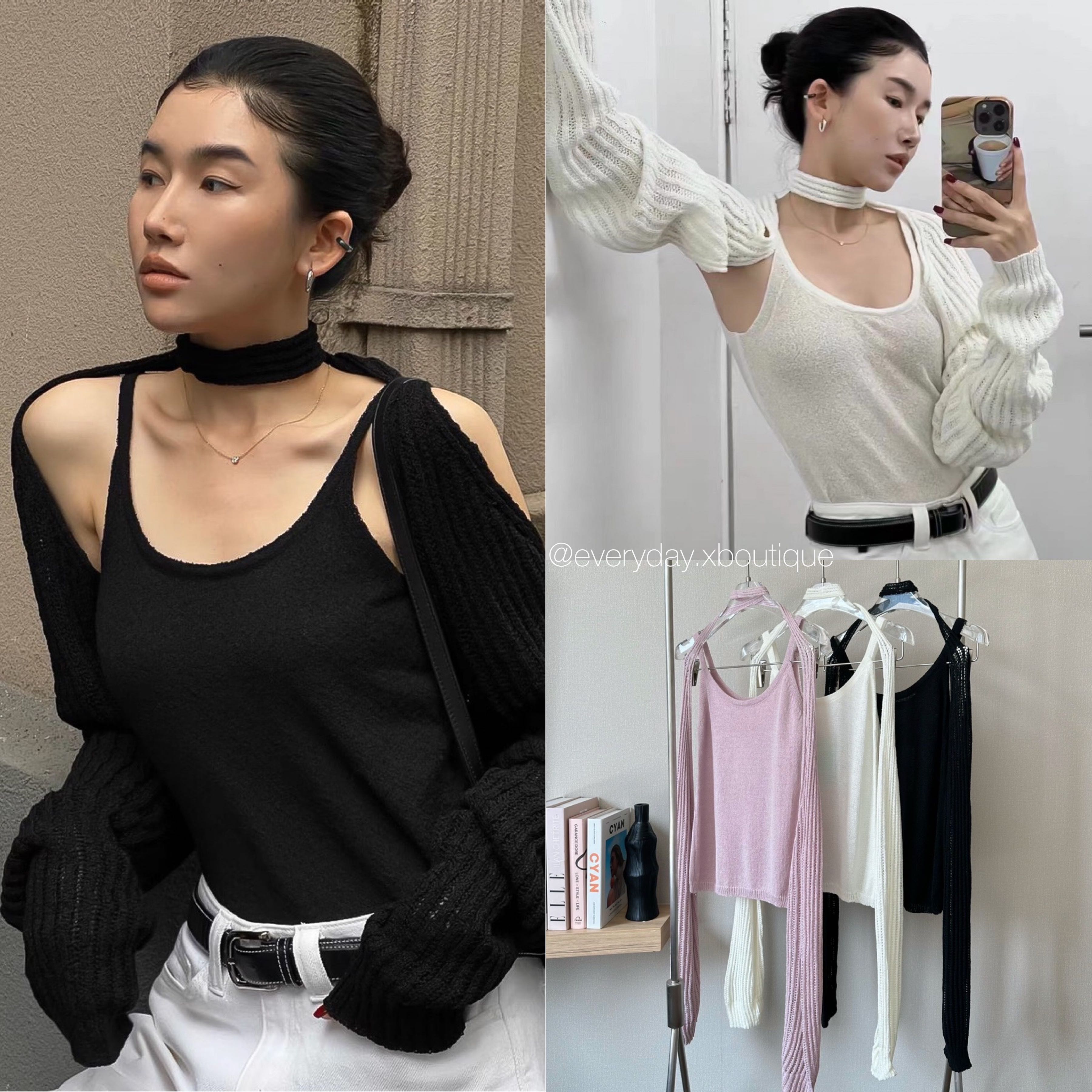 𝖭𝖾𝗐 𝖠𝗋𝗋𝗂𝗏𝖺𝗅🇰🇷🇰🇷 เสื้อสายเดี่ยวไหมพรม มาพร้อม เสื้อคล้องคอเกาะแขนผ้าตาข่าย