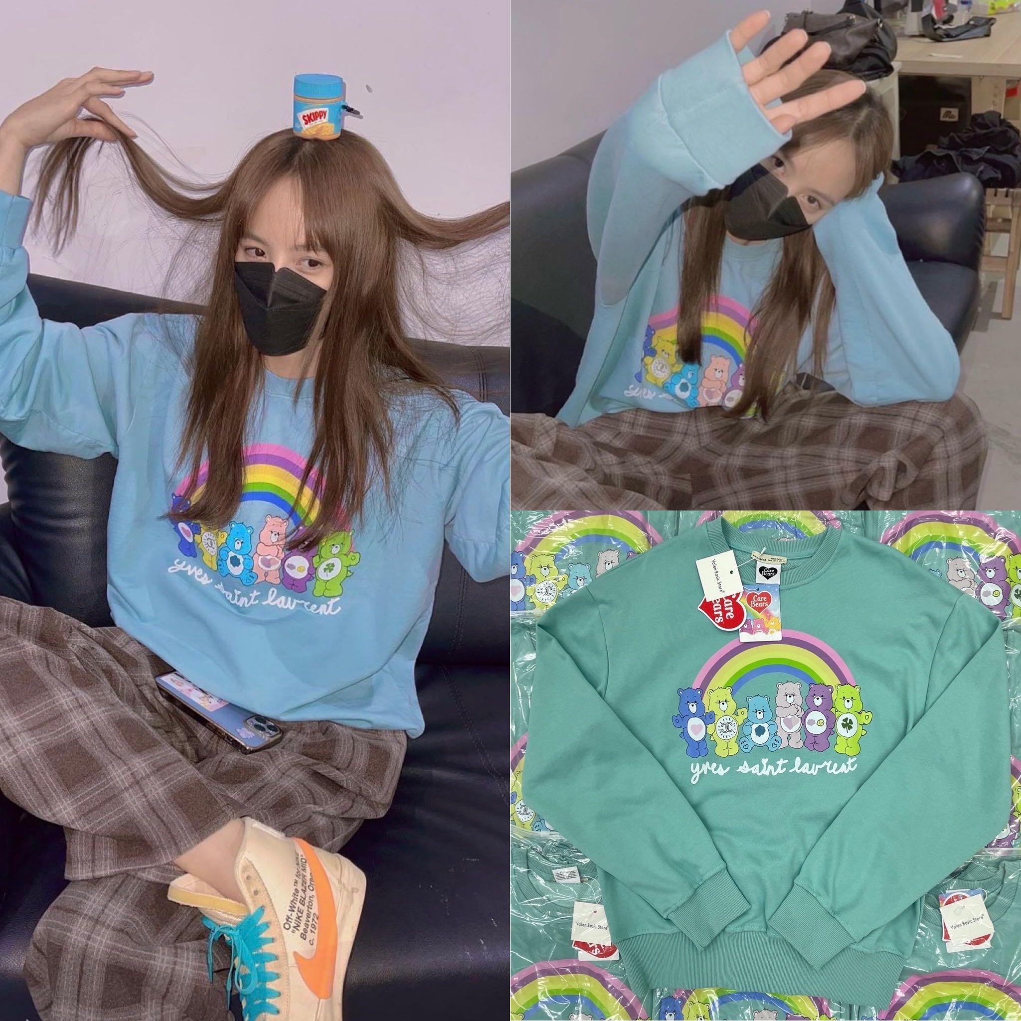 Carebear sweater🌈🧸🧼🩵(400฿) เสื้อแขนยาวสเวตเตอร์สุดคิ้วท์ สกรีนลายน้อนหมีแคร์แบร์ โทนสีพาสเทล
