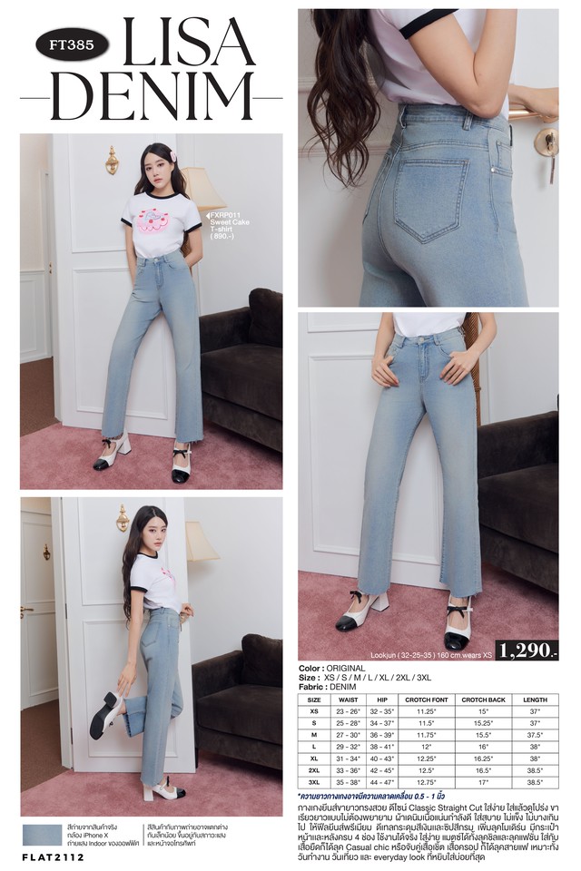Fabric : Denim *ความยาวกางเกงอาจมีความคลาดเคลื่อน 0.5-1 นิ้ว