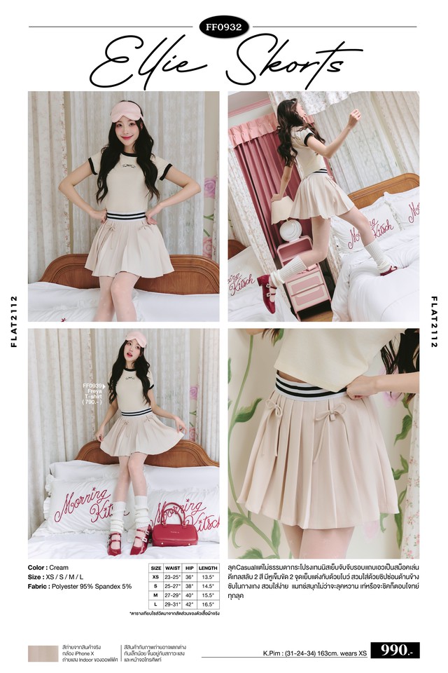 FLAT2112 FF0932 : ELLIE SKORTS กระโปรงสั้น กระโปรงเทนนิส กระโปรงแต่งโบว์