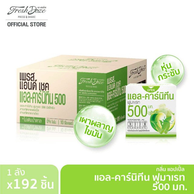 [ลัง 192 ชิ้น] ผงชงดื่ม Fresh Doze เฟรชโดส สูตรแอลคาร์นิทีน 500 มก. กลิ่นแอปเปิ้ลเขียว 3.5g