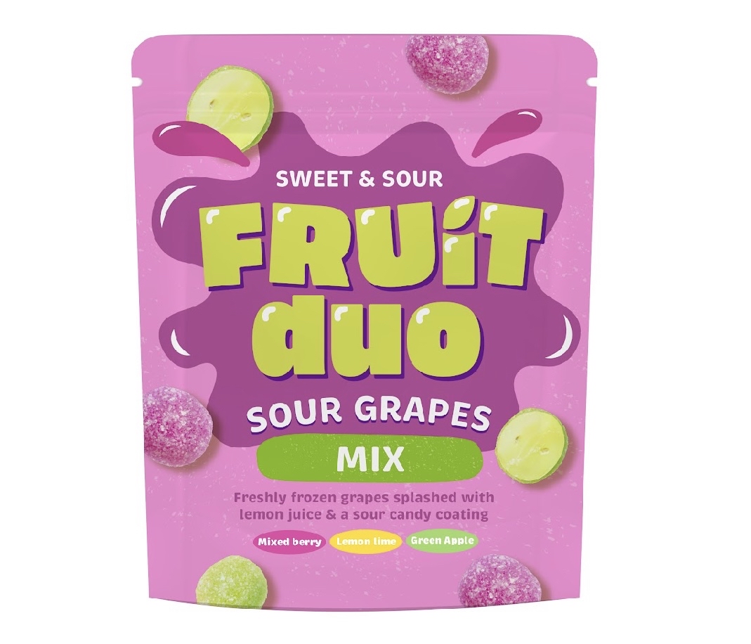 fruit duo sour grape mix flavors แคนดี้องุ่นแท้หวานฉํ่าแช่แข็ง เคลือบด้วยรสชาติผลไม้สุดเปรี้ยวด้านนอก