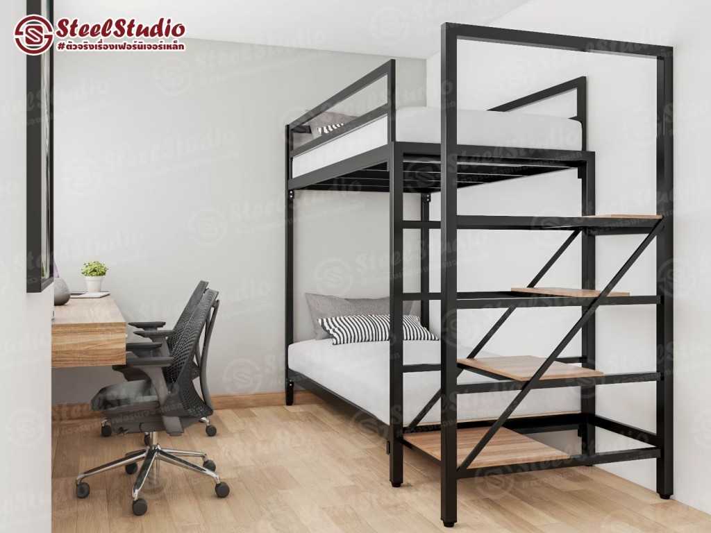 เตียง2ชั้น พร้อมบันไดทางขึ้นเหล็กโมเดิร์น